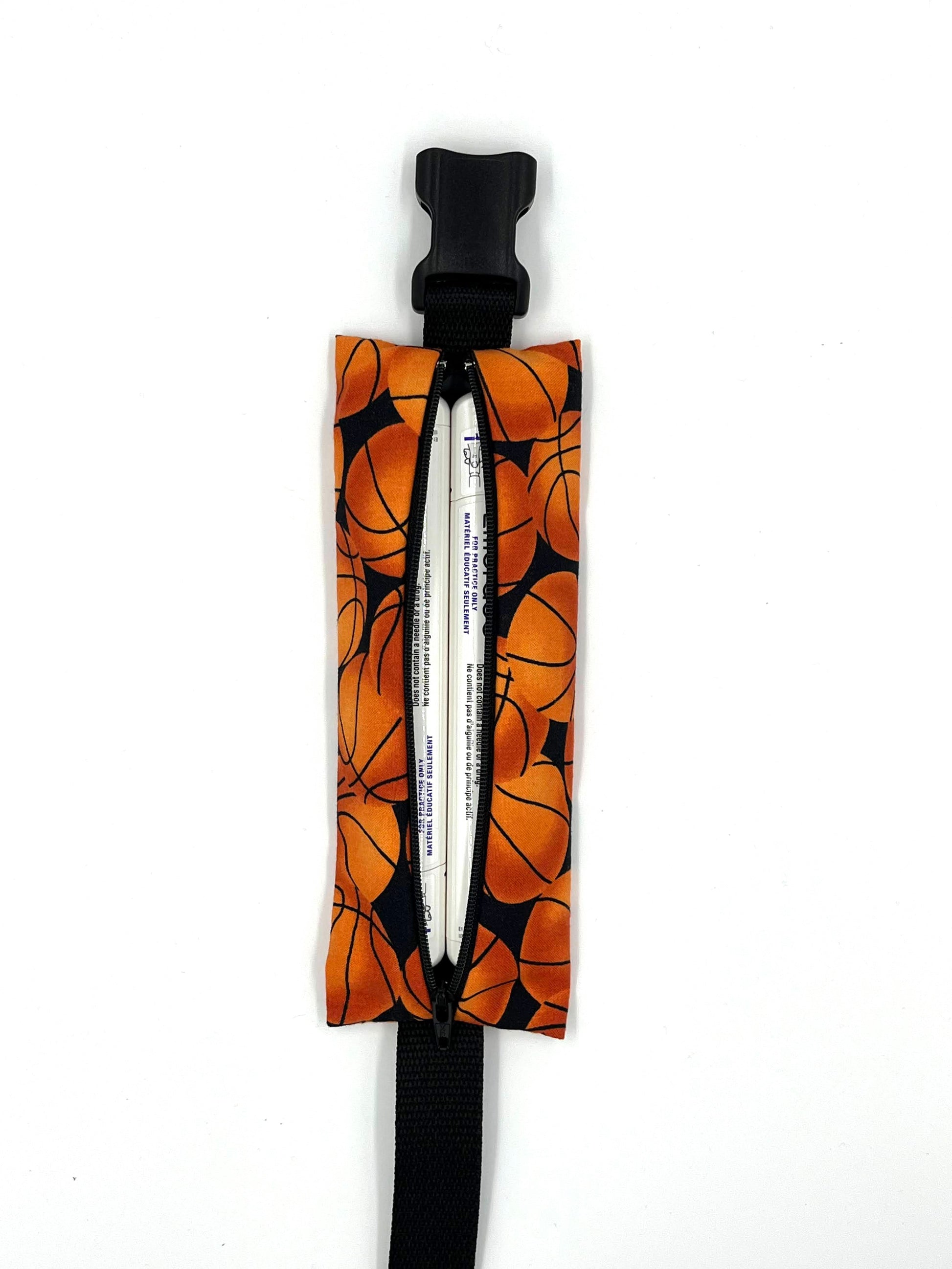 The Classic Pouch is designed to snugly fit up to two of the same auto-injector, including: EpiPen®, ALLERJECT®, AUVI-Q®, Emerade™ 0.3 mg dose, OR a single Emerade™ 0.5 mg dose. If being used for inhalers, it can hold 1-3 depending on style/size.